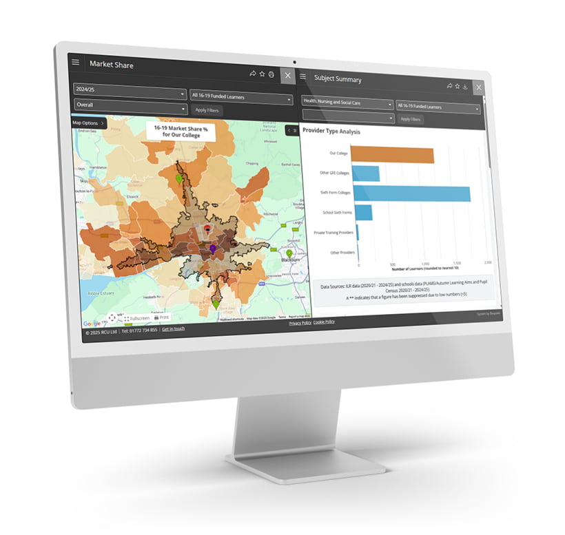 Widely used across the sector by curriculum teams and senior leaders, Vector uses national ILR, schools and HESA data alongside local demographic information and labour market intelligence to equip providers with greater insight and evidence to inform the curriculum and recruitment plans.